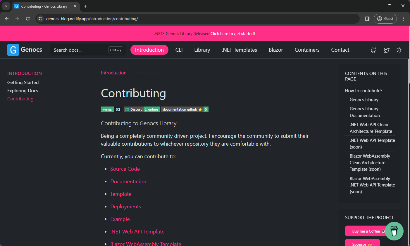 Exploring Docs Genocs Library sports a pretty much straight forward documentation website that is frequently updated and accepts new documentations/corrections from the community!
