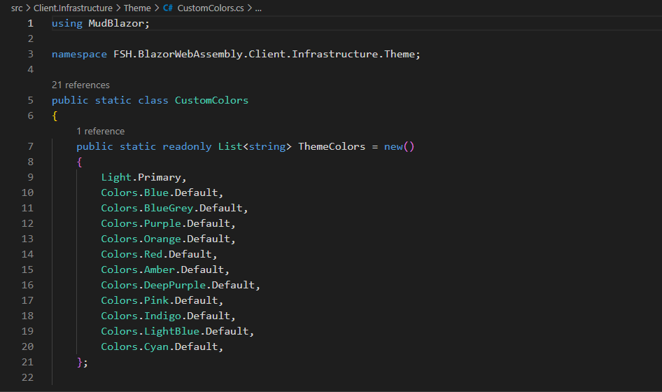 Here you get to set the Primary and Secondary colors used by the Blazor Application and personalize the already rich UI Template.