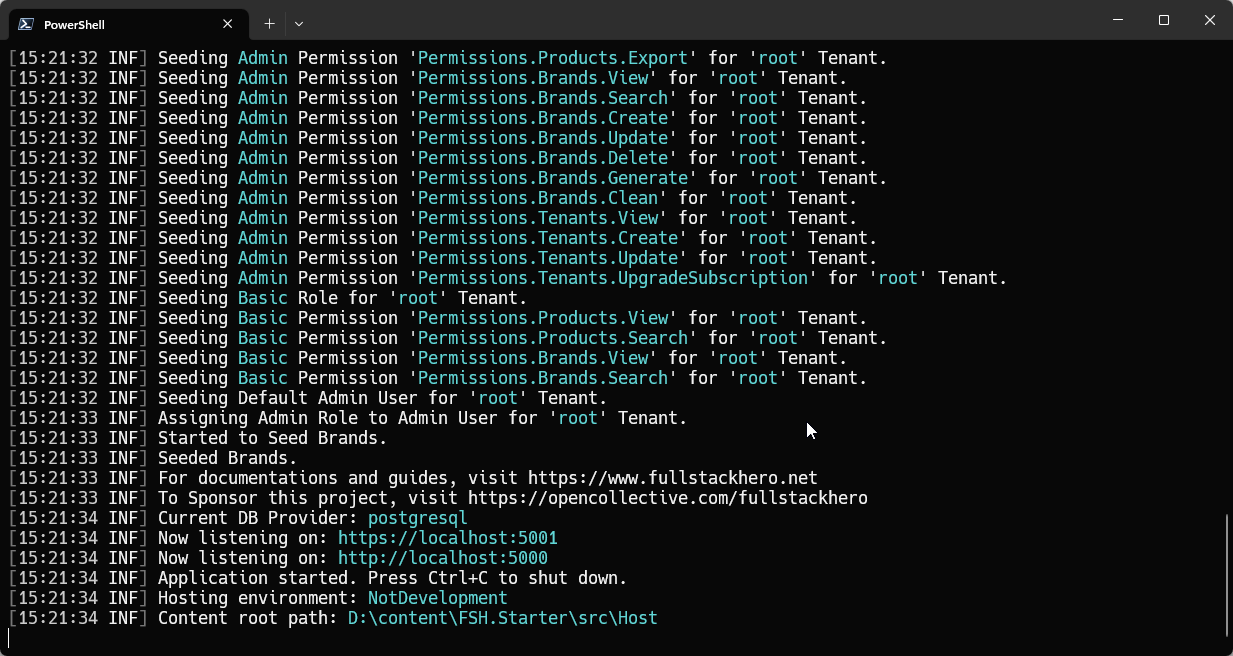 By default, Genocs WebAPI template ships with pre-configured PostgreSQL connection strings