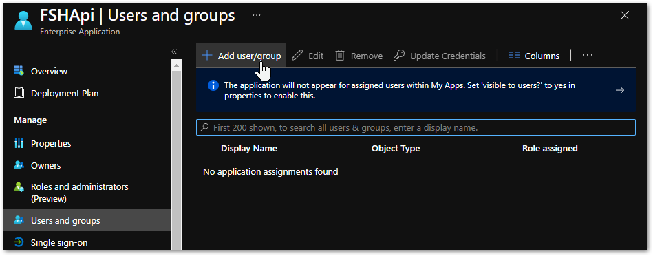 On the next screen, you can select one or more users/groups, select an App role and click on the